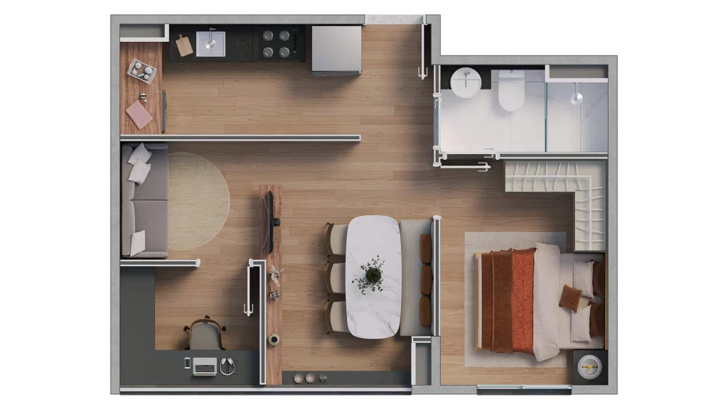 Inclusive, compradores em busca de imóveis compactos, entre 30 m² e 60 m², são os que mais se beneficiam desse tipo de suíte, pois a otimização da área construída é essencial para garantir conforto sem perder funcionalidade. Além disso, essa escolha pode ser decisiva na valorização do imóvel para venda ou aluguel, sendo bem vista por famílias que priorizam uma boa divisão de espaço.